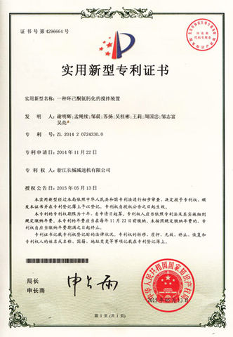 一種環(huán)己酮氨肟化的攪拌裝置--國(guó)家實(shí)用新型專(zhuān)利證書(shū)