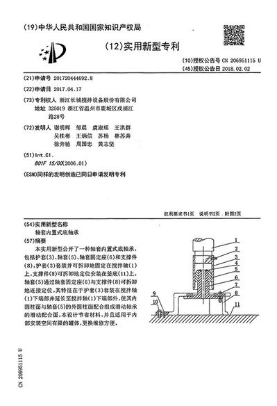 熱烈祝賀我司“軸套內(nèi)置式底軸承”獲國(guó)家實(shí)用新型專利