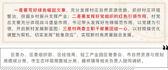 8月7日,區(qū)委書記姜景峰一行赴藤橋鎮(zhèn)開展“三服務(wù)”活動及河長制督查、村規(guī)模優(yōu)化調(diào)整工作調(diào)研。
